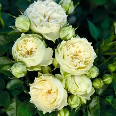 Роза спрей Бланшетт представляет собой изысканный немецкий сорт, покоряющий утонченной двухцветной палитрой и необычной формой. Этот пионовидный сорт образует мелкие шаровидные цветы диаметром 6-8 сантиметров, сочетающие в себе кремово-белые и свеже-зеленые оттенки. Густомахровые соцветия, собранные в элегантные кисти по 3-5 бутонов, создают впечатление воздушных флористических помпонов. Компактный куст с практически бесшипными побегами формирует аккуратную округлую крону высотой до 80 сантиметров, идеально сохраняющую пропорции в течение всего сезона. Легкий ненавязчивый аромат дополняет общий образ этой современной садовой примы.